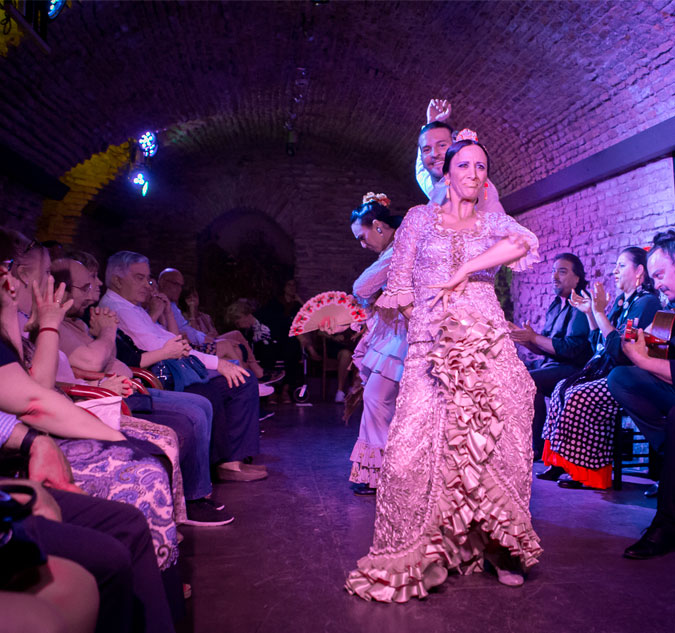 La única bóveda flamenca de Sevilla, con piedras romanas y un aforo íntimo. El Flamenco más cercano con los artistas a un palmo, podrás oír incluso su respiración.